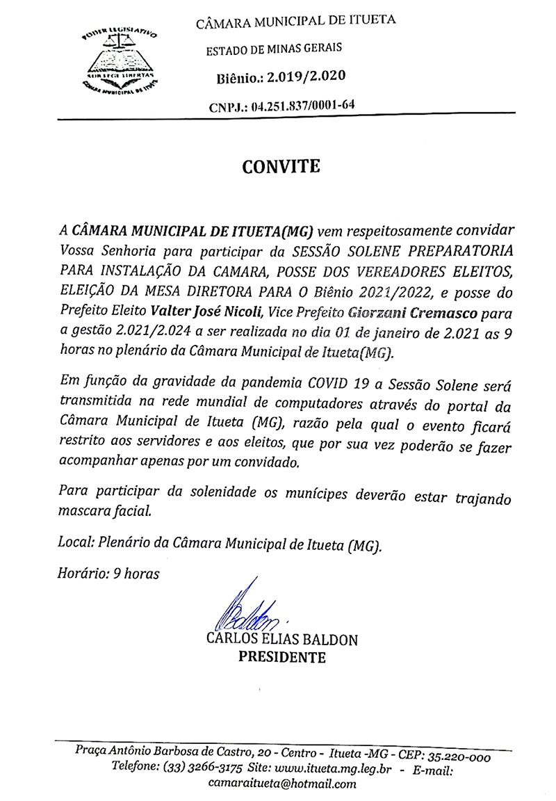 Câmara Municipal de Itueta - Estado de Minas Gerais
