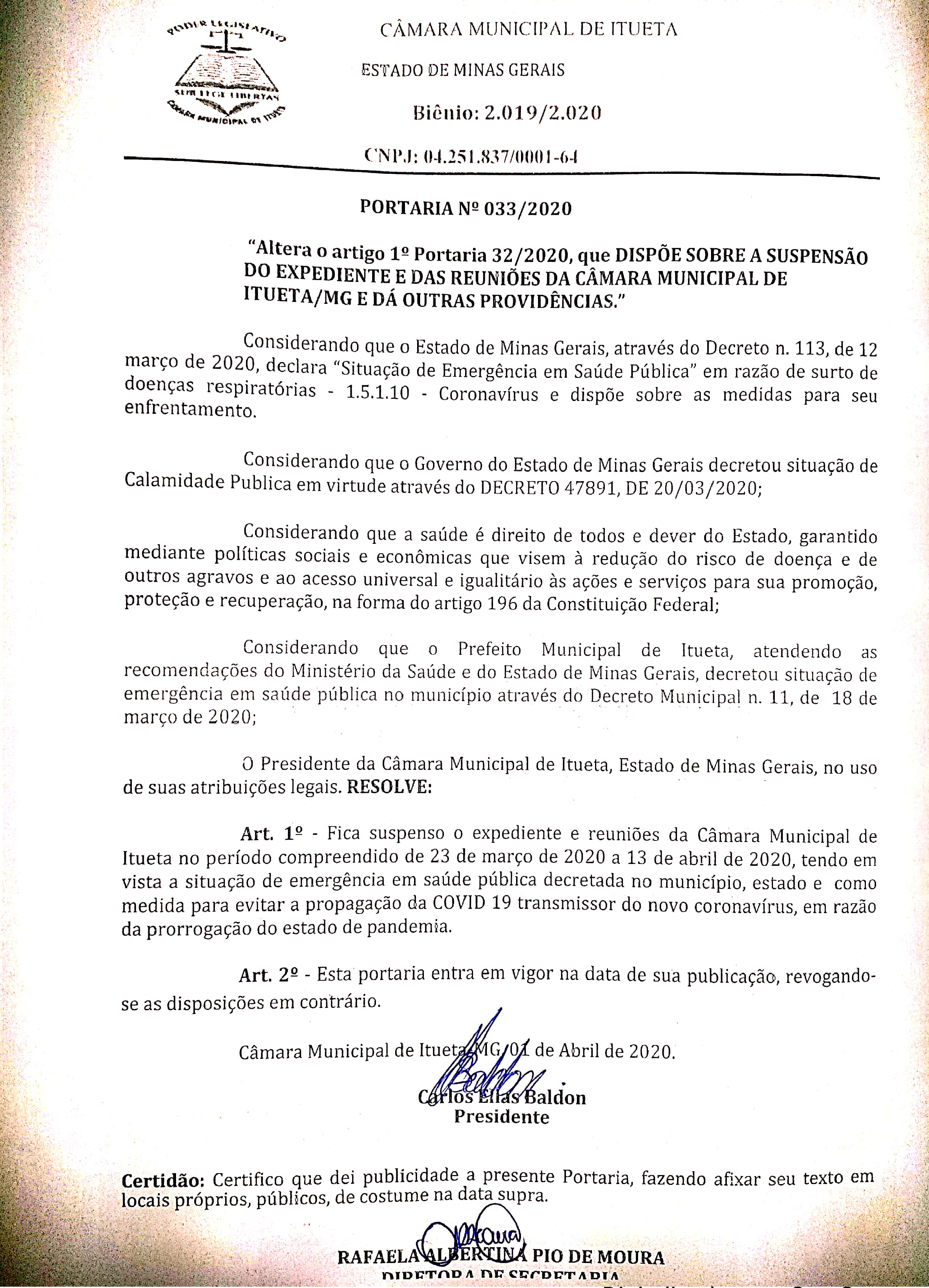 Portaria 033/2020