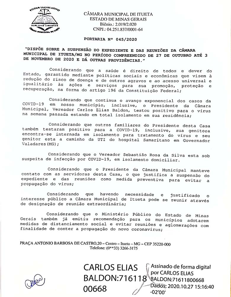 Câmara Municipal de Itueta - Estado de Minas Gerais