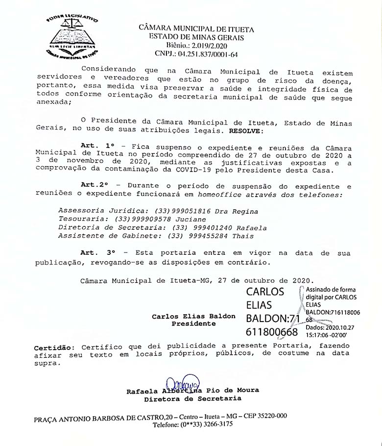 Câmara Municipal de Itueta - Estado de Minas Gerais